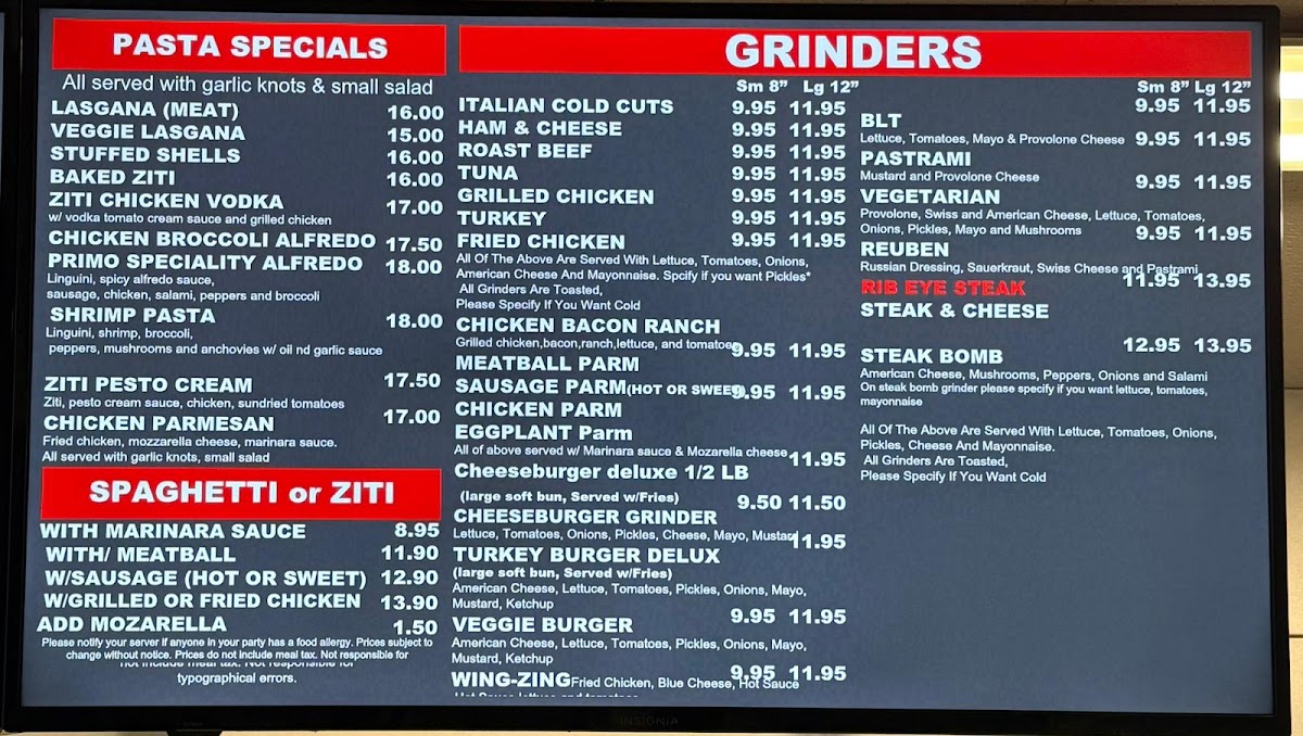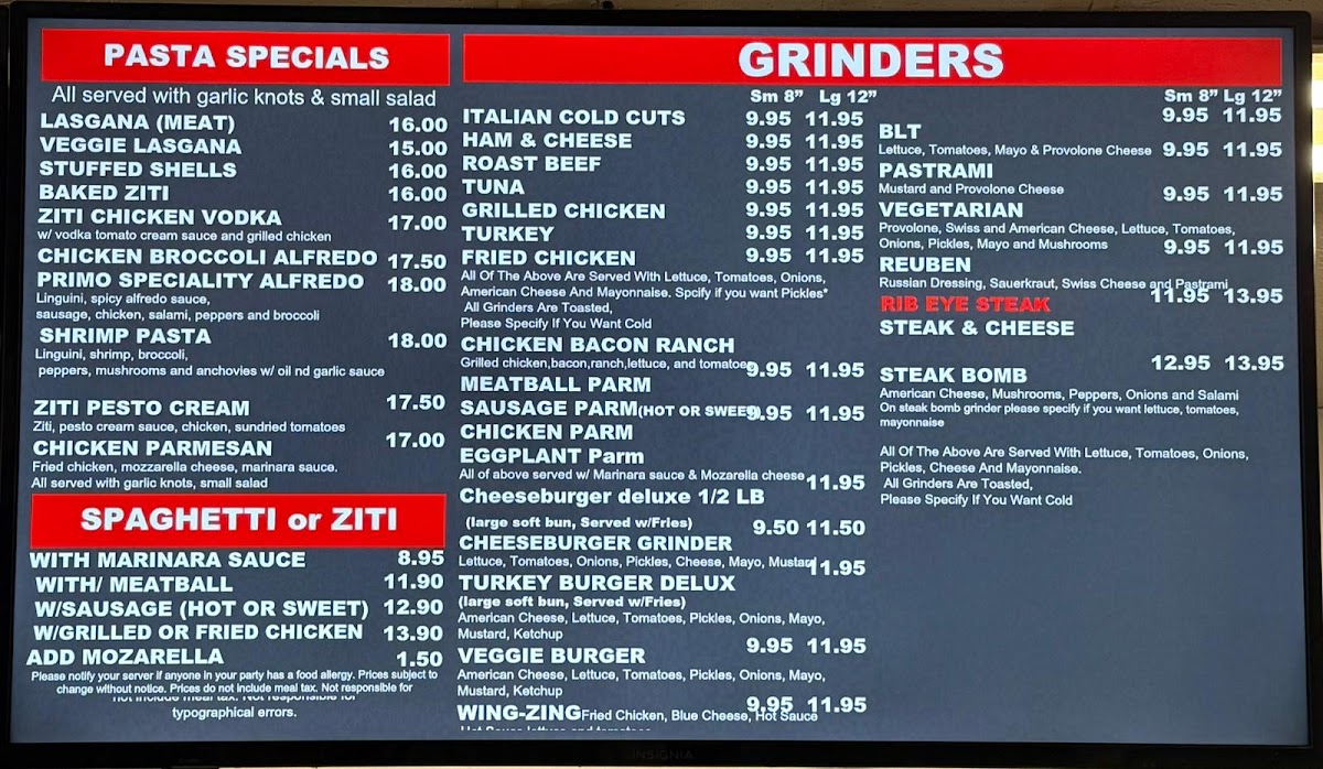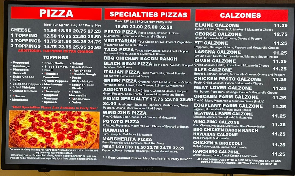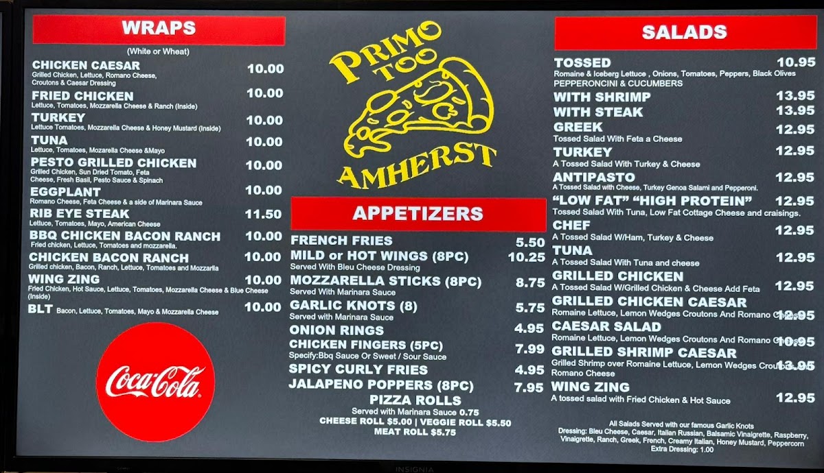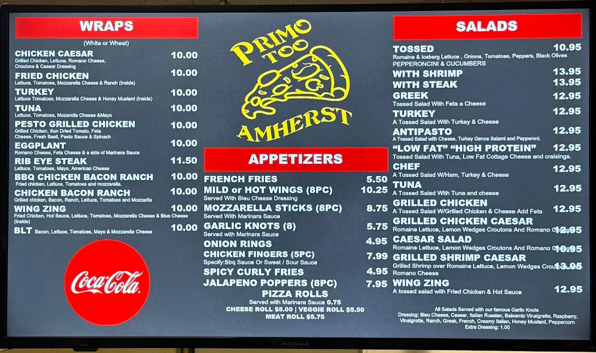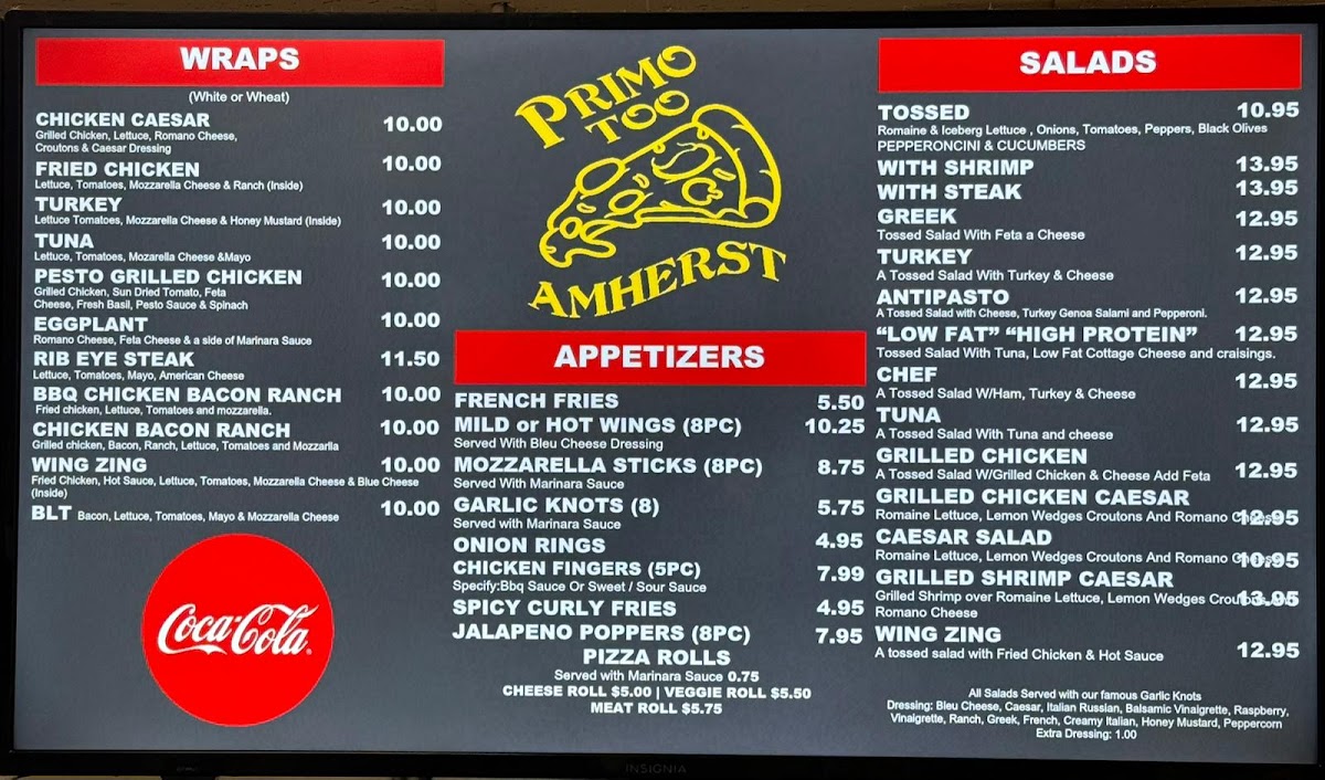 Looking for a place where delicious pizza and comforting Italian favorites meet in the heart of Amherst? Look no further than Primo Too Pizzeria Amherst Menu. Whether you’re craving a classic Margherita pizza or something more adventurous, the menu offers a variety of options that will surely hit the spot. From freshly baked pizzas with a perfect crispy crust to mouthwatering pasta dishes, every bite is a treat. Their extensive selection of toppings and combinations means you’ll always find something to satisfy your taste. The atmosphere is casual, and the food is served with a touch of warmth and care that makes it the perfect spot for a meal with friends or family. Don't miss out on the delightful appetizers and tempting desserts, which are just as delicious as the main dishes.